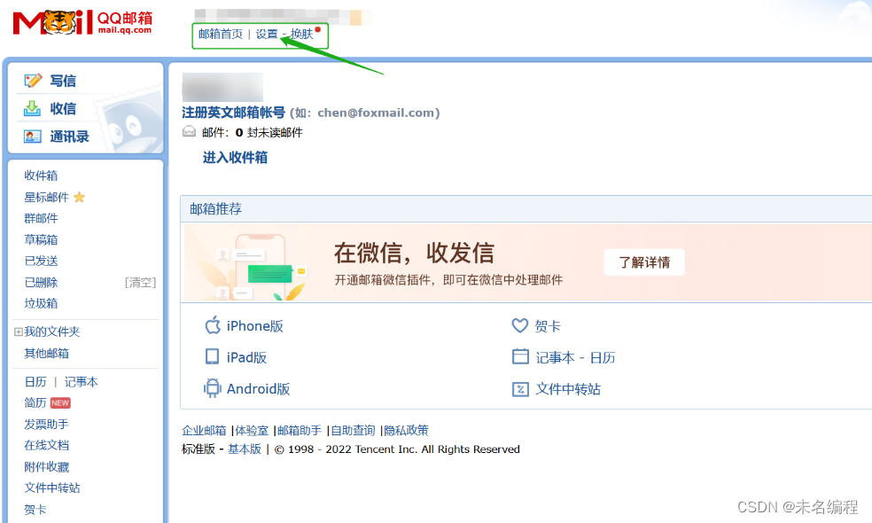 第一步:打開QQ郵箱,找到設置