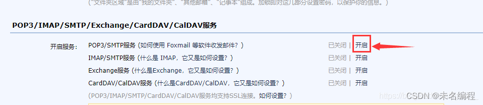 第三步在這個頁面找到下圖這個位置,在POP/SMTP服務哪一行,點擊開啟,這個時候你會看到一個彈框,按照里邊的要求,發(fā)一封短信,此時你會看見一串字符,這個就是你的授權(quán)碼。